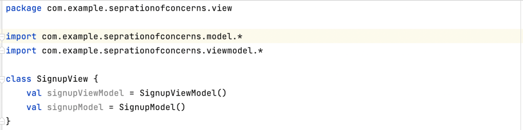 If you observe the ‘build.gradle’ file of model module, no dependencies are added as this is lower level component in the example shown above. This does not dependant on other higher level modules. Whereas, if you observe the ‘build.gradle’ files of view and viewmodel module, dependencies of lower level components are added. So that View and ViewModel components can use the lower level components. Now, after these changes, View component can use the ViewModel and ViewModel component can use the Model. See the snapshots below.