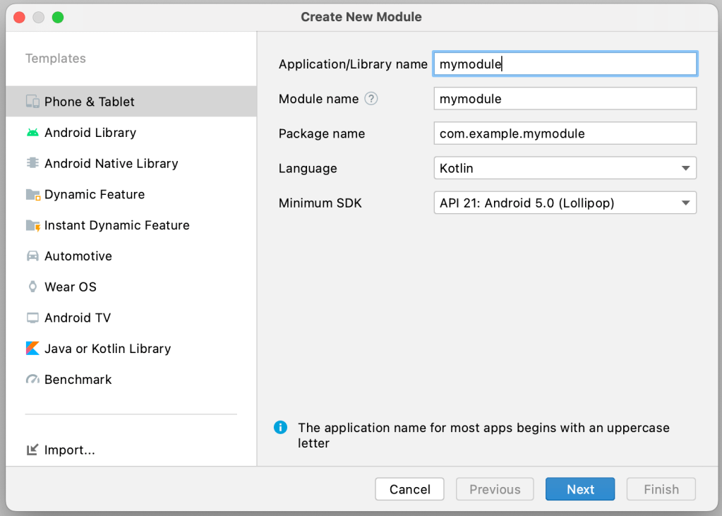 Best approach is, we need to organise the different components in a such a way that platform or IDE itself should give compile time errors, when lower level components try to get a reference of Higher level components. In android projects, we can create new modules for each of these separate components. Android studio provide the option to create or import different types of module in the project, as shown in below snapshot.